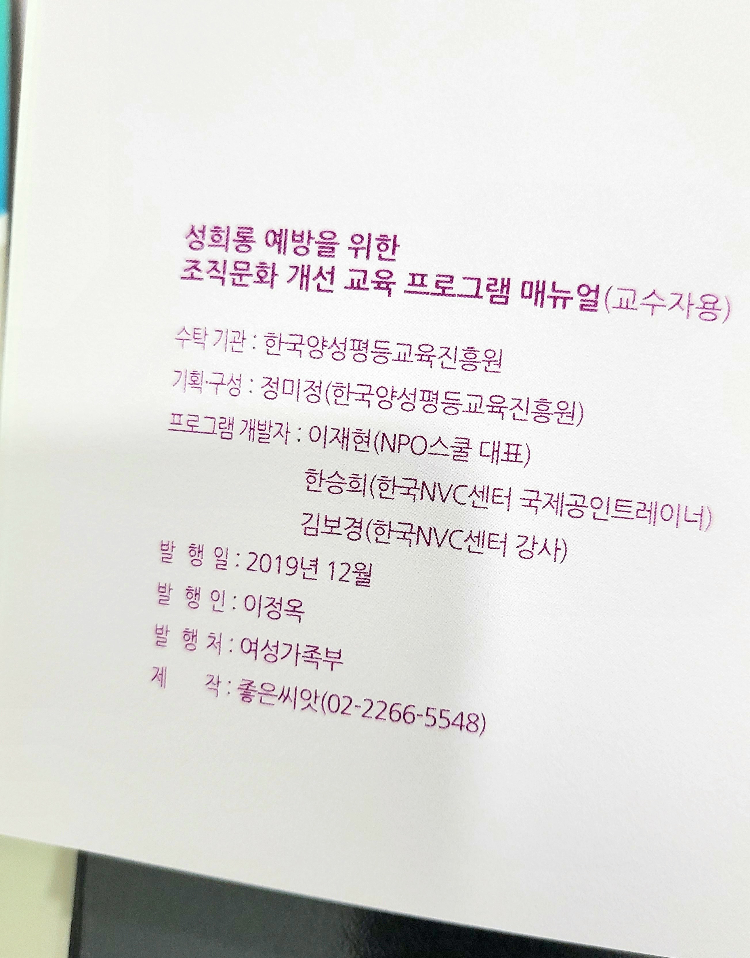 여성가족부 <성희롱 예방 조직문화 교육 프로그램> 교재 집필 및 직강