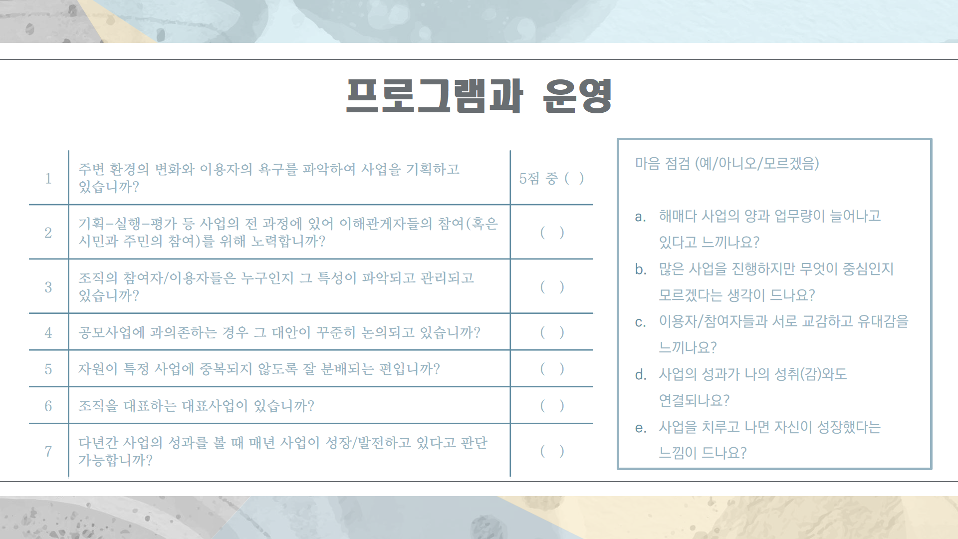"공익활동을 수행하는 조직의 전반을 점검하고 싶다면"